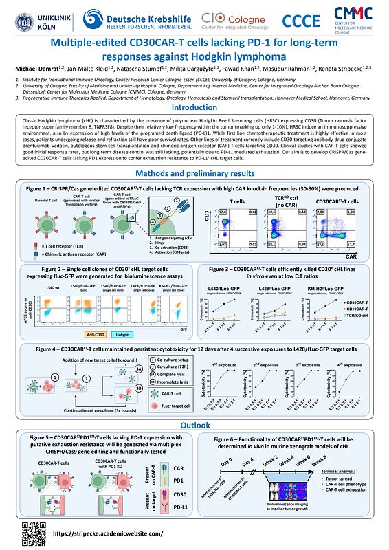 Prof. Dr. Renata Stripecke kindly invites you to the upcoming SFB 1530 Double Feature: Talk by Ulrike Köhl within the seminar series (CRC 1530 conference series) + Lymphoma Tech Meeting on Tuesday the 20th of August 2024 at 1 pm.