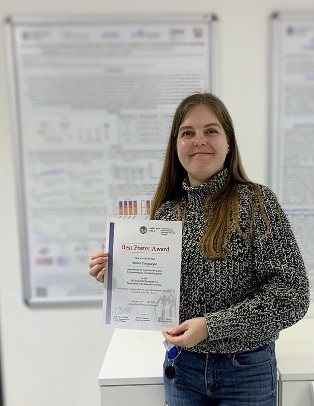 We proudly congratulate Dr. Milita Dargužytė on her achievements: Best Poster Award - an outstanding poster presented at the 20th Scientific Retreat of the Department I for Internal Medicine University Hospital Cologne on January 17th - 18th, 2025. This scientific retreat took place at Geno Hotel Rösrath, Germany.
